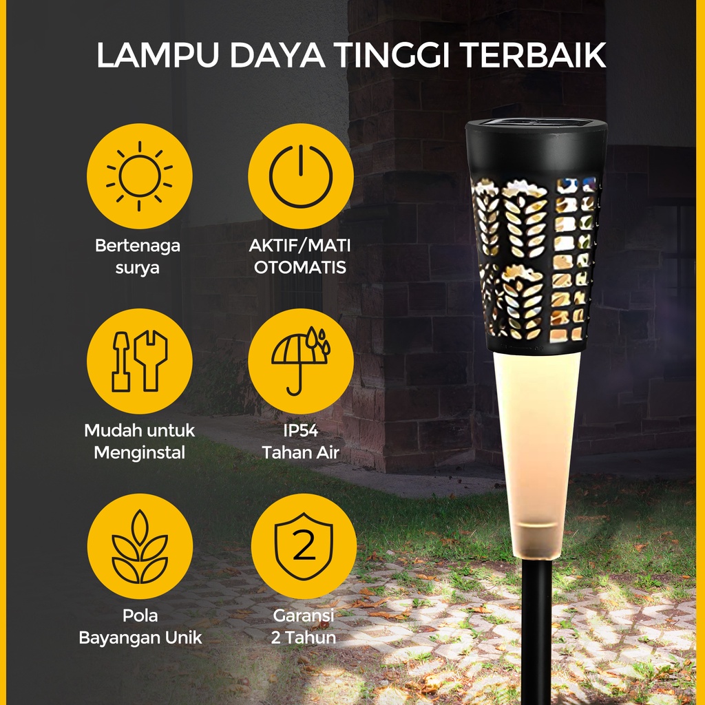 Lampu dekorasi yang sangat cocok untuk penerangan diluar ruangan. Lampu ini memiliki pencahayaan LED yang terang, sehingga menerangi pekarangan, kebun, taman anda di malam hari. Lampu taman ini menggunakan energi solar, sehingga sangat hemat energi karena tidak membutuhkan energi listrik.